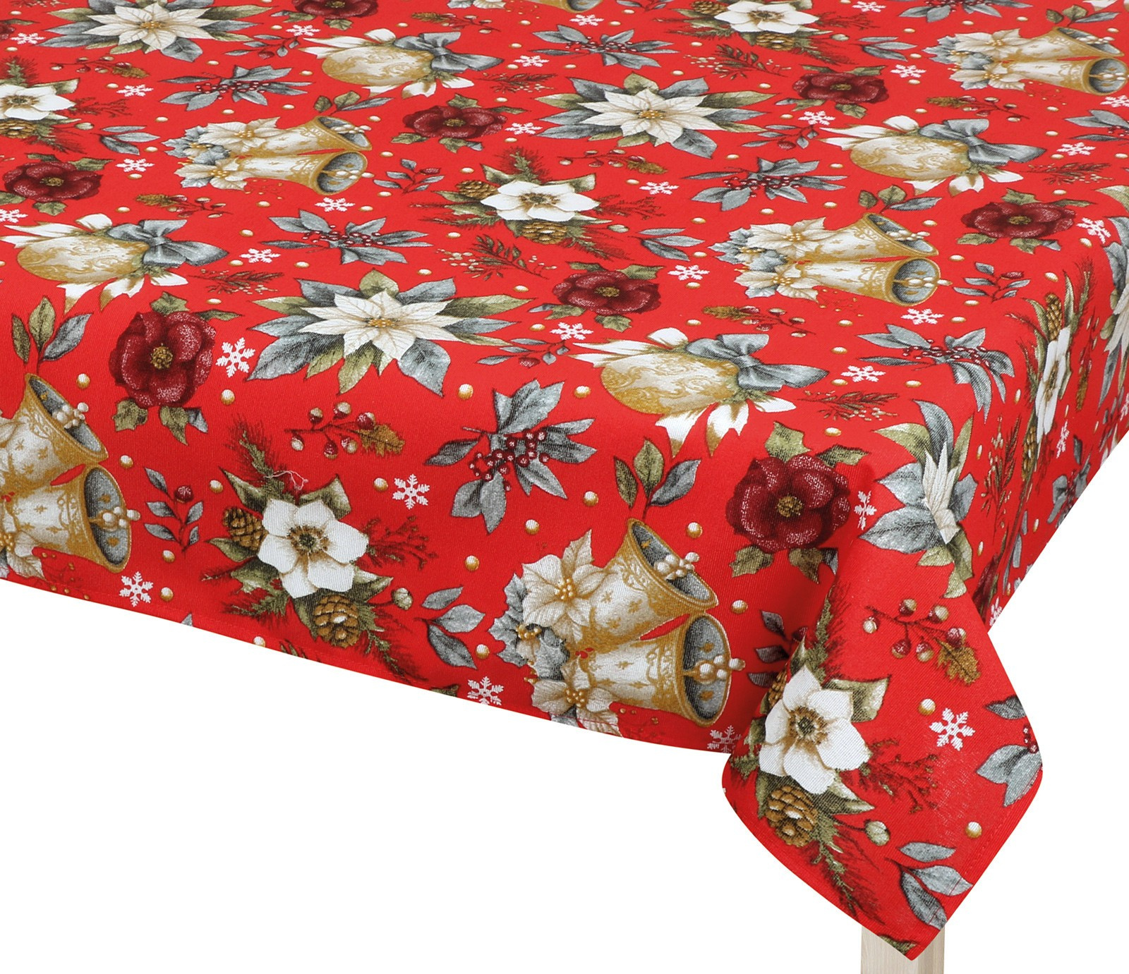 Tento obrus s vianočným motívom je ušitý z kvalitného materiálu, ktorý je odolný voči poškodeniu. Na Vašom stole bude skvele vynikať a stane sa obľúbeným doplnkom na Vianoce vo Vašej kuchyni. V rovnakom dizajne je možné objednať aj kuchynskú chňapku alebo obliečku na vankúšik.