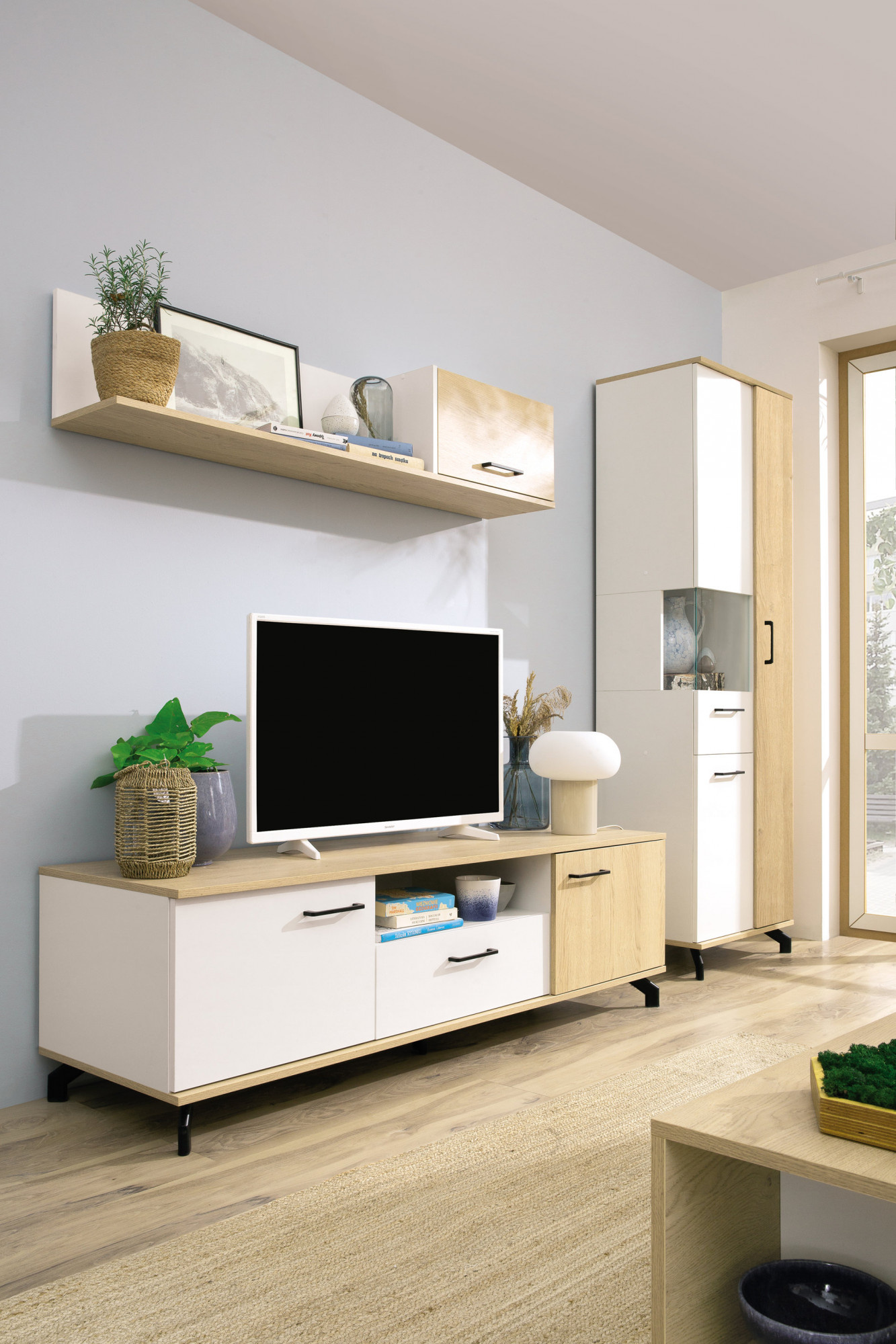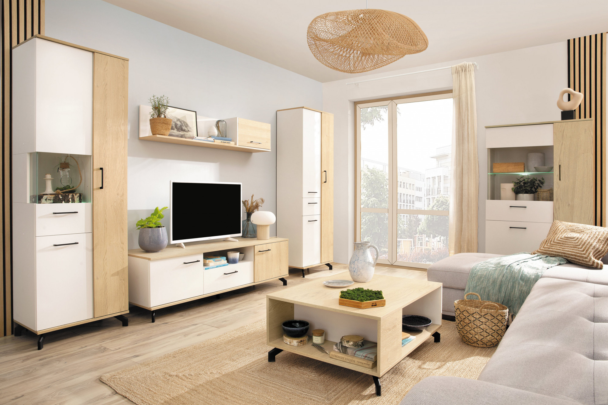 Vitrína MADISON - MD5, dub biskvitový/biela Lux