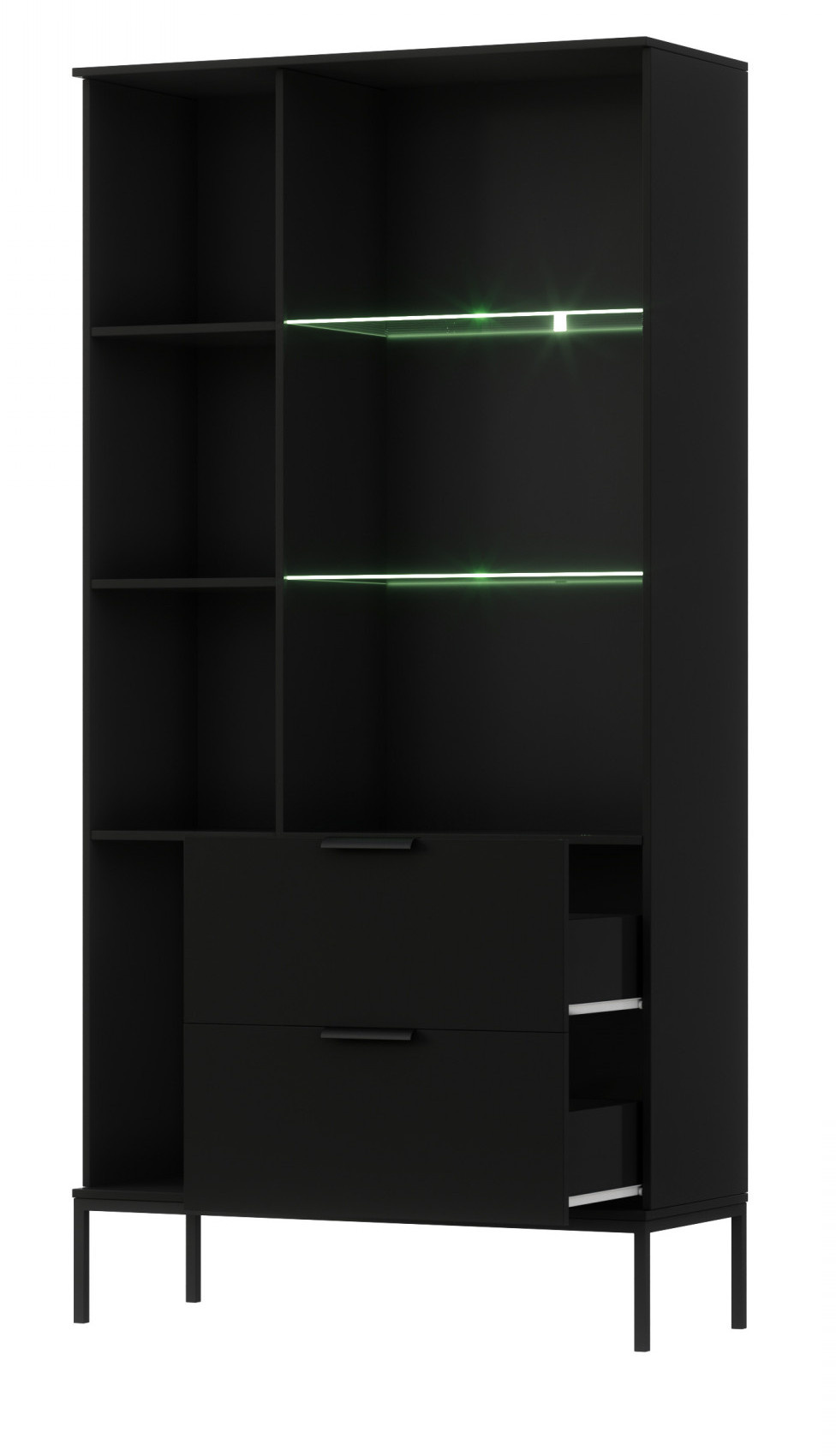 Vitrína Meorati je elegantný kus nábytku, ktorý dokonale doplní váš interiér. Má ideálne rozmery pre efektívne využitie dostupného priestoru. Výrobok má hĺbku 60 cm, šírku 100 cm a pôsobivú výšku 200 cm. Je vyrobený z odolnej dosky s hrúbkou 16 mm, čo zaisťuje pevnosť a trvanlivosť. Skrinka Meorati je vybavená kovovými nohami o výške 20 cm, ktoré zabezpečujú stabilitu a pevnú oporu, vďaka čomu je nábytok bezpečný a spoľahlivý. Skrinka je vybavená dvoma priestrannými zásuvkami s ABS hranami. To nielen poskytuje estetické riešenie, ale tiež ponúka dodatočnú ochranu a odolnosť pre zásuvky. Vitrína Meorati má dvojicu dverí s frézovanými čelami, čo nábytku dodáva eleganciu a štýl. Navyše sú jedny z dverí vyrobené zo skla, čo vytvára atraktívny vizuálny efekt. Poličky za skleneným panelom sú vyrobené zo skla a osvetlené LED klipmi, ktoré poskytujú jemné osvetlenie vo vnútri skrine a zvýrazňujú uložené predmety. So svojou kapacitou, odolnosťou a estetickým dizajnom je vitrína Meorati vynikajúcim riešením pre tých, ktorí hľadajú elegantný kus úložného nábytku. Jeho jedinečné prvky, ako sú sklenené dvere a osvetlené police, dodávajú interiéru osobitý charakter. Bude slúžiť nielen ako funkčný prvok vo vašom interiéri, ale aj ako dekoratívny doplnok, ktorý priťahuje pozornosť a dodáva celému priestoru čaro.