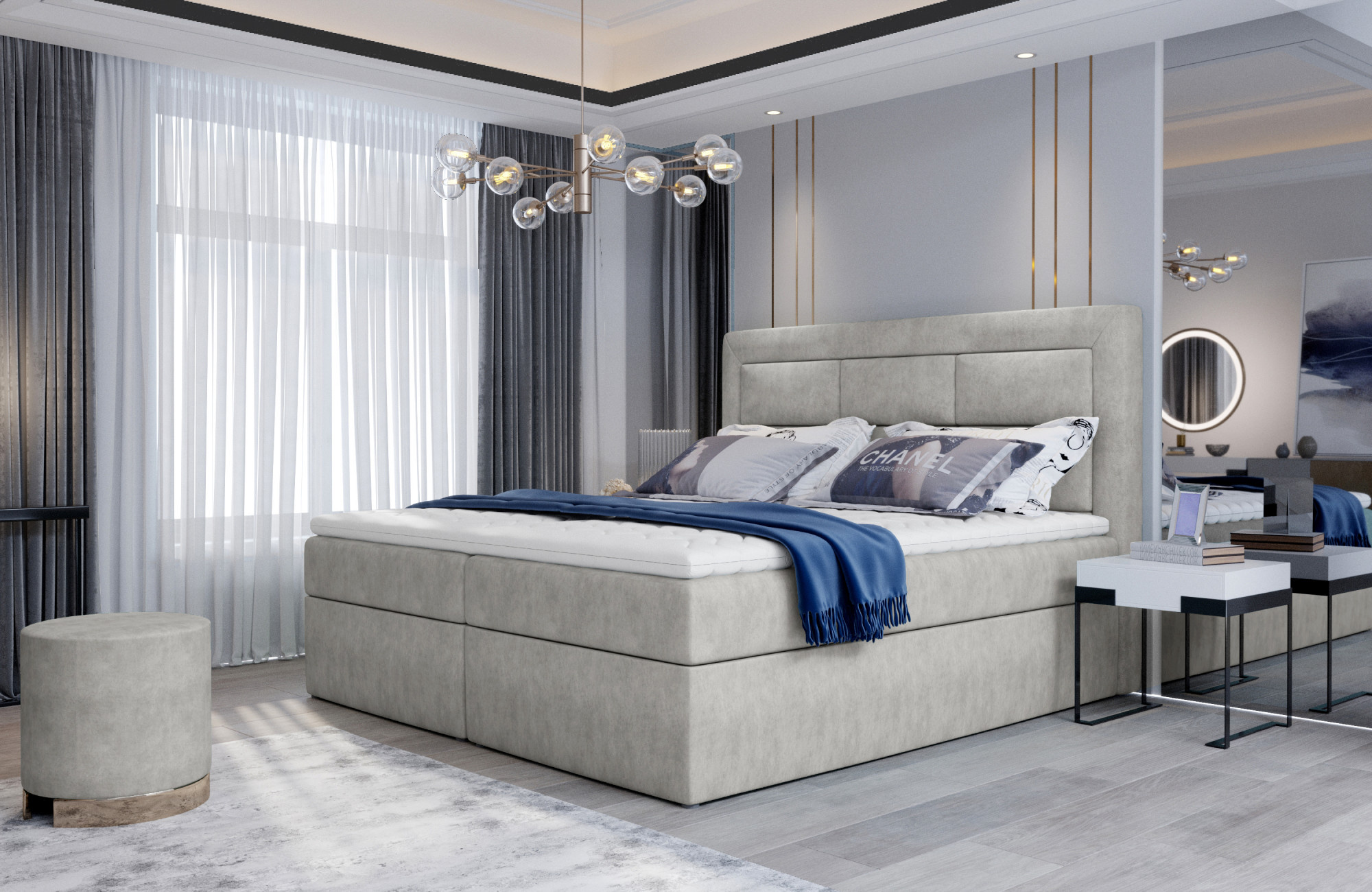 Vivre je jednoduchá a priestranná, no pritom elegantná a veľmi pohodlná kontinentálna posteľ typu boxspring, ktorá bude dokonalým zakončením každého moderného dizajnu spálne. Tento model, dostupný v troch veľkostiach: 140/160/180 x 200 cm, je vybavený pevným bonellovým matracom a penou T25. Okrem toho stojí za to pozrieť sa aj na dva priestranné úložné boxy na posteľnú bielizeň. Ďalšími charakteristickými prvkami postele Vivre sú: módne prešívané operadlo, vysoké sedadlo o výške 53 centimetrov a malé nožičky. Ak máte záujem o pohodlnú a zároveň štýlovú posteľ, z ktorej vstanete vždy tou správnou nohou vďaka maximálnemu pohodliu a funkčnosti, ktorú ponúka - pozývame vás, aby ste sa zaujímali o našu Boxspring Vivre. Koniec koncov, zdravý spánok je tá najdôležitejšia vec.