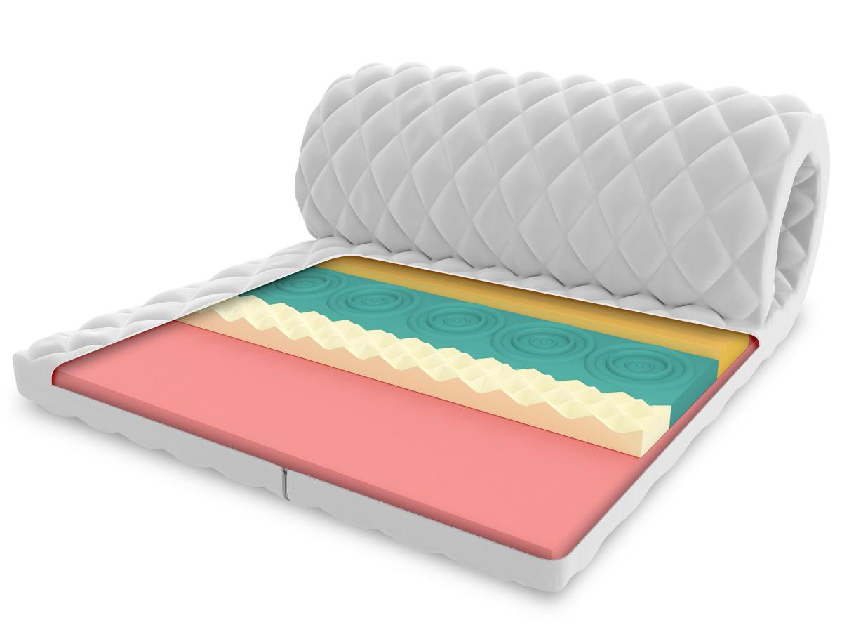 Topper je vyrobený zo špeciálnej termoplastickej peny VISCO, ktorá reaguje na tlak a teplotu tela a poskytuje ideálnu oporu jednotlivým častiam tela. Krycia matrac sa optimálne prispôsobí postave používateľa. Vďaka svojim ortopedickým vlastnostiam zmierňuje prípadný tlak v oblasti bedier alebo krku, čo je veľmi dobré pri problémoch s krvným obehom. Profilovaná 7-zónová vysoko pružná pena HR H30. Profilovaný povrch rozdeľuje matrac do 7 zón, vďaka čomu sa matrac dokonale prispôsobí tvaru tela. Má nerovnomernú bunkovú štruktúru a preto dosahuje lepšie parametre pohodlia a pružnosti. Tento materiál sa vyznačuje mimoriadnou trvanlivosťou a odolnosťou proti deformácii. Navyše získava svoj pôvodný tvar dvakrát rýchlejšie ako štandardná polyuretánová pena. To znamená, že profilovaná HR pena rýchlejšie reaguje na zmeny polohy tela počas spánku. Antialergický prešívaný poťah Premium 200 g/m² s membránovou štruktúrou je vyrobený z najkvalitnejších prvotriednych hypoalergénnych materiálov, ktoré zaisťujú výnimočnú mäkkosť, sviežosť a mimoriadne pohodlie a spokojnosť s jeho používaním. Zabraňuje prenikaniu nečistôt do matraca, chráni pred prenikaním baktérií, húb, plesní a roztočov. Poťah je opatrený všitým zipsom, ktorý umožňuje jeho ľahké zloženie na pranie.