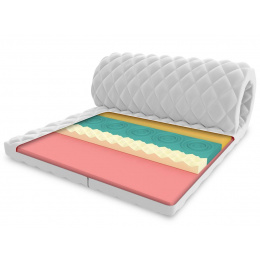 Topper je vyrobený zo špeciálnej termoplastickej peny VISCO, ktorá reaguje na tlak a teplotu tela a poskytuje ideálnu oporu jednotlivým častiam tela. Krycia matrac sa optimálne prispôsobí postave používateľa. Vďaka svojim ortopedickým vlastnostiam zmierňuje prípadný tlak v oblasti bedier alebo krku, čo je veľmi dobré pri problémoch s krvným obehom. Profilovaná 7-zónová vysoko pružná pena HR H30. Profilovaný povrch rozdeľuje matrac do 7 zón, vďaka čomu sa matrac dokonale prispôsobí tvaru tela. Má nerovnomernú bunkovú štruktúru a preto dosahuje lepšie parametre pohodlia a pružnosti. Tento materiál sa vyznačuje mimoriadnou trvanlivosťou a odolnosťou proti deformácii. Navyše získava svoj pôvodný tvar dvakrát rýchlejšie ako štandardná polyuretánová pena. To znamená, že profilovaná HR pena rýchlejšie reaguje na zmeny polohy tela počas spánku. Antialergický prešívaný poťah Premium 200 g/m² s membránovou štruktúrou je vyrobený z najkvalitnejších prvotriednych hypoalergénnych materiálov, ktoré zaisťujú výnimočnú mäkkosť, sviežosť a mimoriadne pohodlie a spokojnosť s jeho používaním. Zabraňuje prenikaniu nečistôt do matraca, chráni pred prenikaním baktérií, húb, plesní a roztočov. Poťah je opatrený všitým zipsom, ktorý umožňuje jeho ľahké zloženie na pranie.