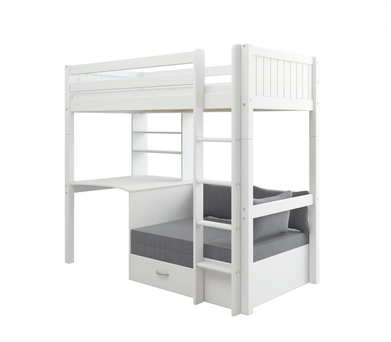Vysoká posteľ so stolom a rozkl. pohovkou Romantic 462 biela