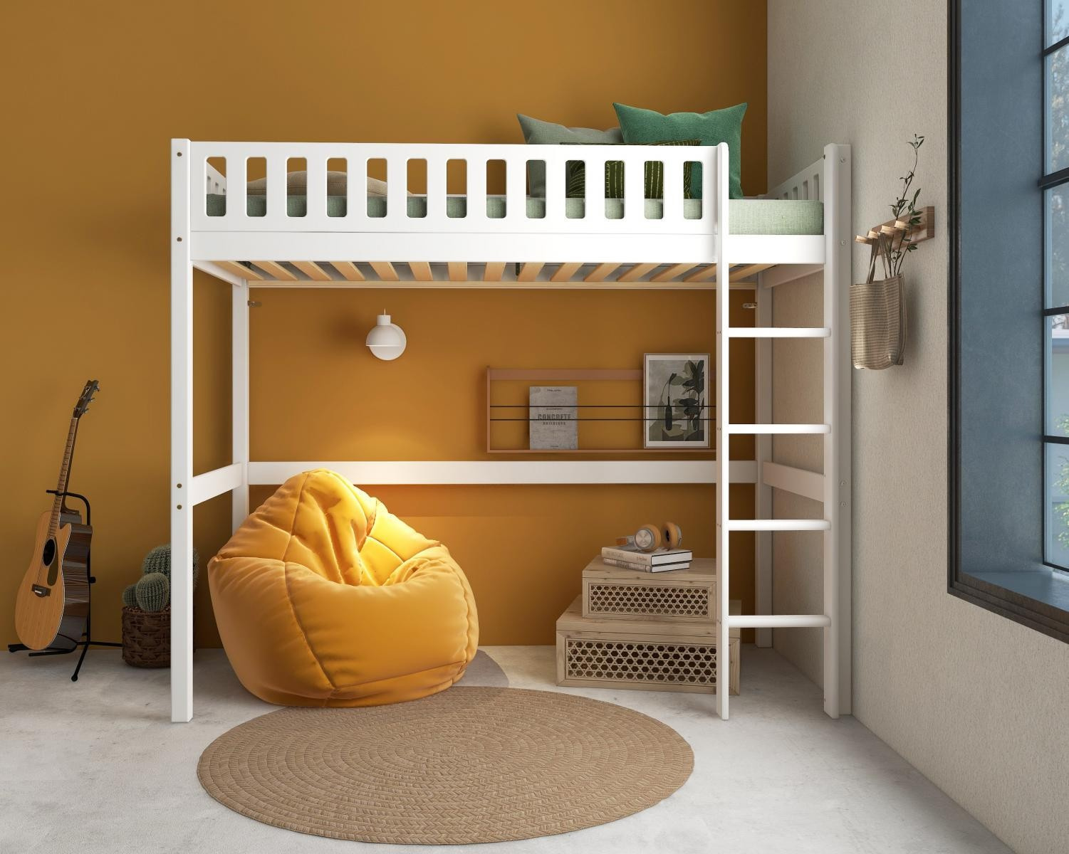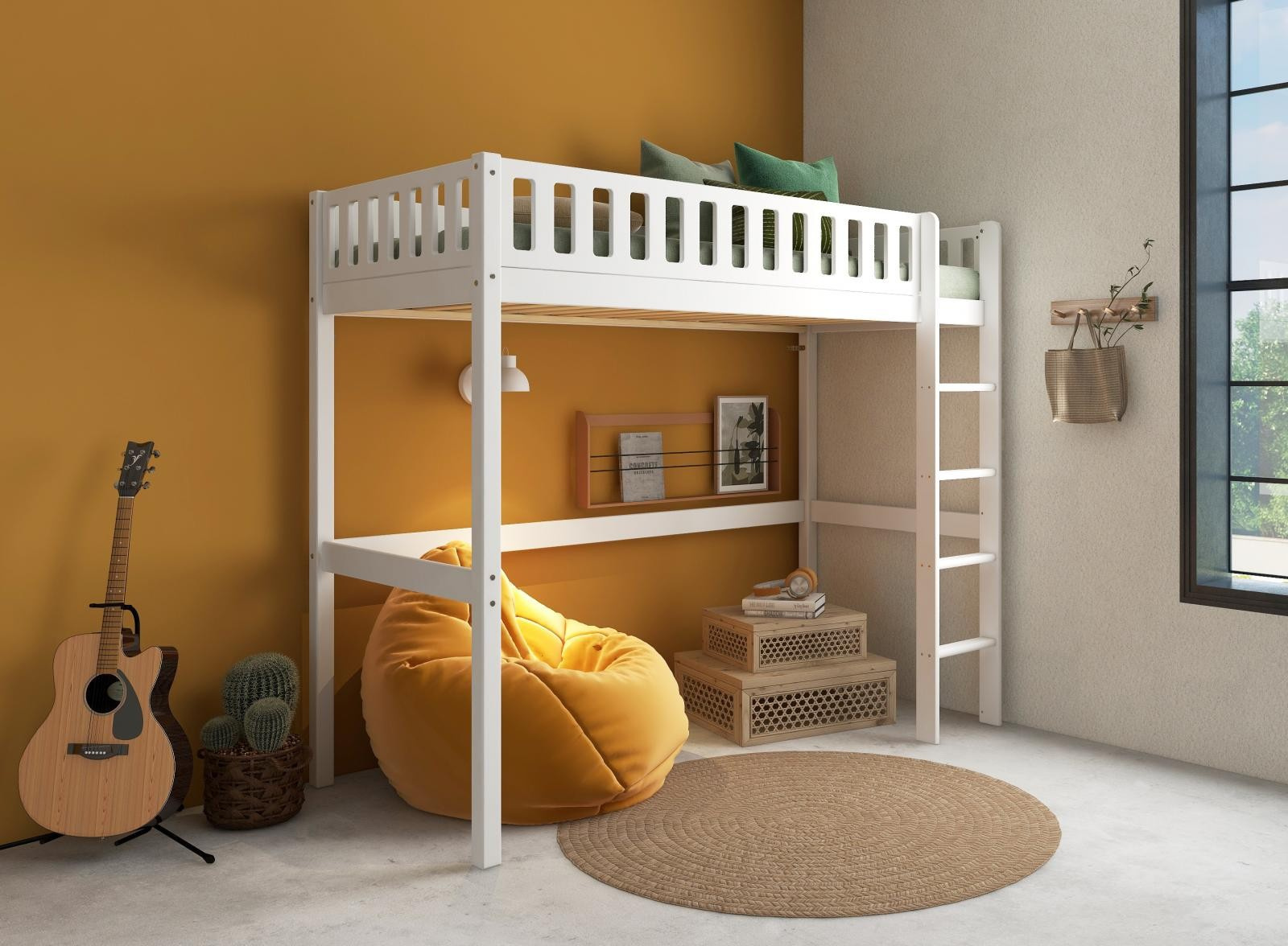 Vysoká posteľ Viggo je fantastickým riešením pre maximálne využitie priestoru v menšej detskej izbe. Využite extra priestor na štúdium, odpočinok alebo pre všetko to oblečenie - nekonečné možnosti.