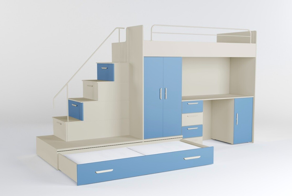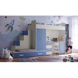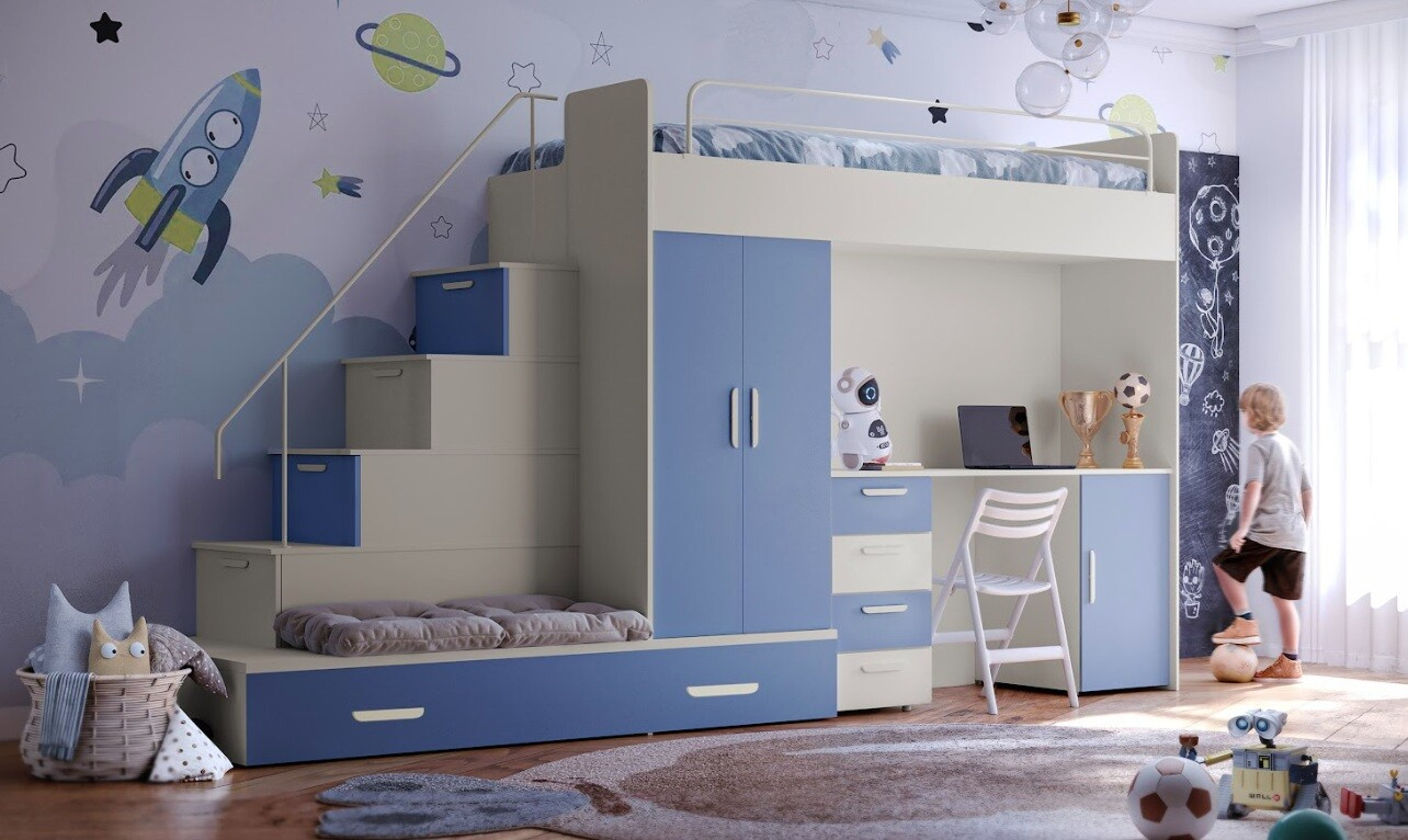 Vytvorte svojmu dieťaťu útulný a praktický priestor s našou multifunkčnou posteľou, ktorá ponúka nielen pohodlie, ale aj dostatok úložného priestoru a pracovnú plochu pre každodenné aktivity.