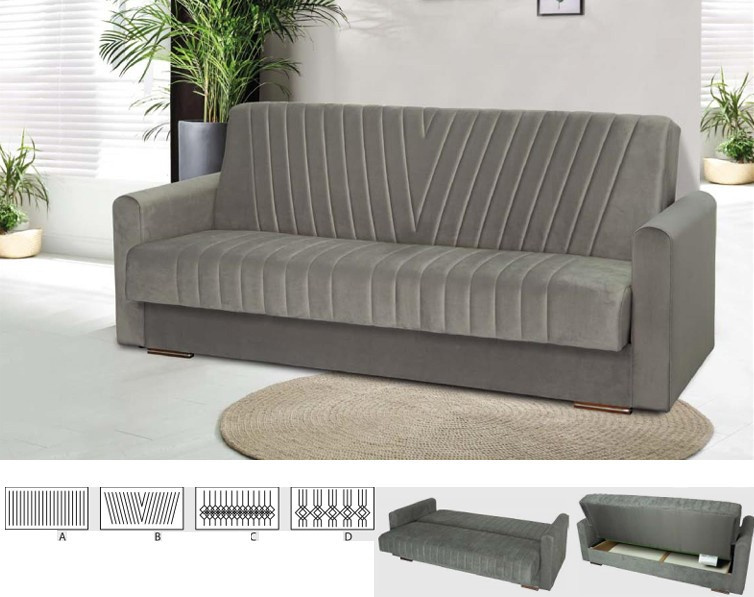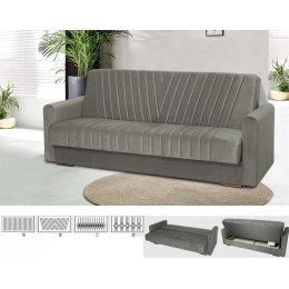 Dĺžka: 213 cm Šírka: 95 cm Výška sedu: 46 cm Plocha na spanie: 186x118 cm Dostupné farby dreva: jelša, orech, wenge. Pohovka je vyrobená na dvojitej pružine - vlnitá pružina + bonell. Všetky rozmery sú uvedené s toleranciou +/- 5 cm Fotografie materiálov sú iba ilustračné, a preto sa môžu mierne líšiť od skutočnosti.