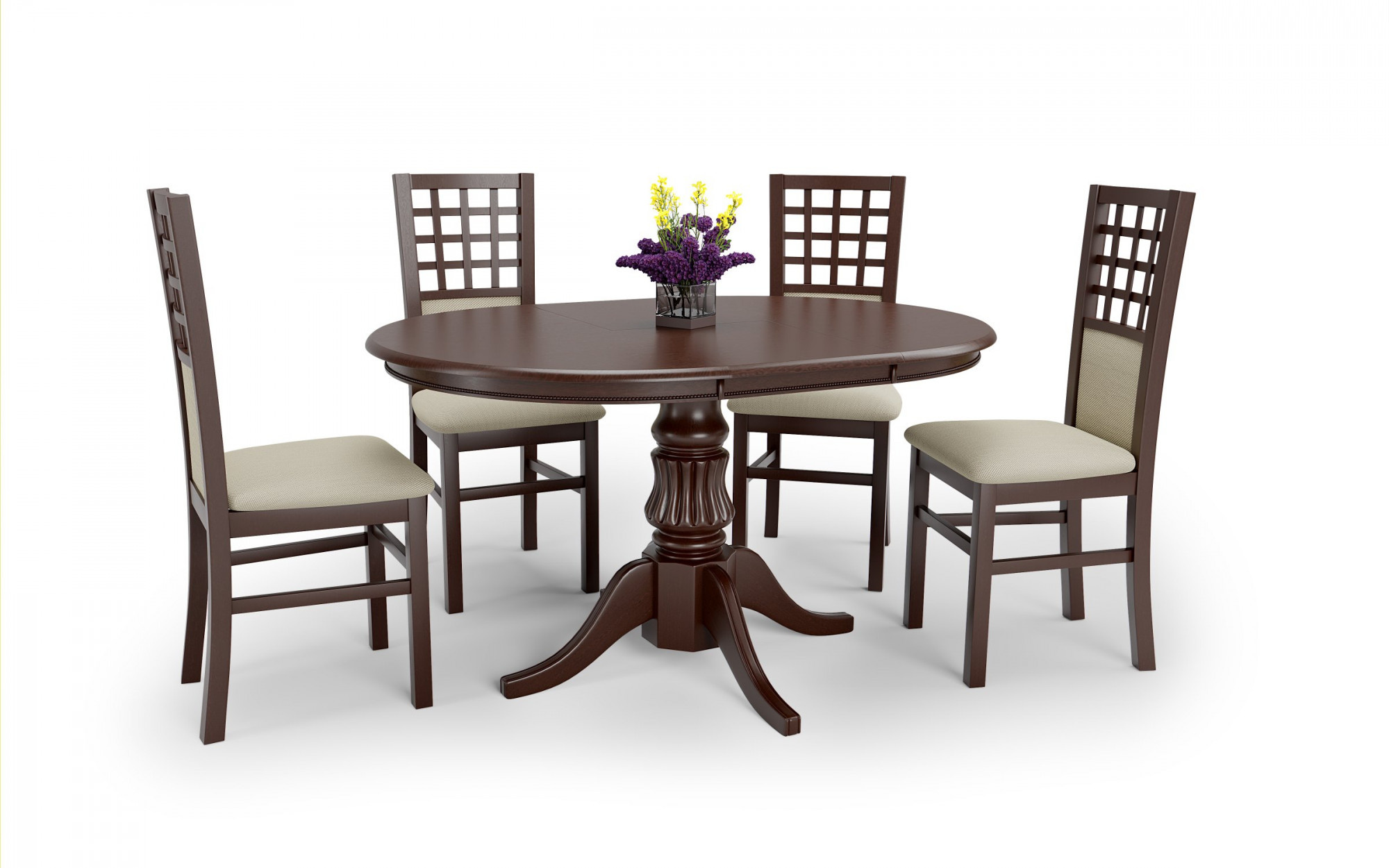 rozkladací stôl, rozmery: 90÷124/90/75 cm, materiál: vrchná doska - MDF + prírodná dyha, nohy - masívne drevo, farba: tmavý orech