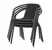 Zahradní židle v černém provedení kombinuje pevný kovový rám s odolným plastovým sedákem a opěradlem, které jsou navrženy pro snadnou údržbu a dlouhou životnost. Díky stohovatelnému designu umožňuje efektivní skladování a šetří místo při nepoužívání. Zaoblené opěrky rukou a ergonomicky tvarovaný sedák zajišťují pohodlné posezení během venkovních aktivit. Stabilní kovové nohy jsou opatřeny plastovými krytkami, které chrání podlahu a zvyšují stabilitu. Černá barva dodává židli univerzální vzhled vhodný pro různé typy zahradního nábytku.