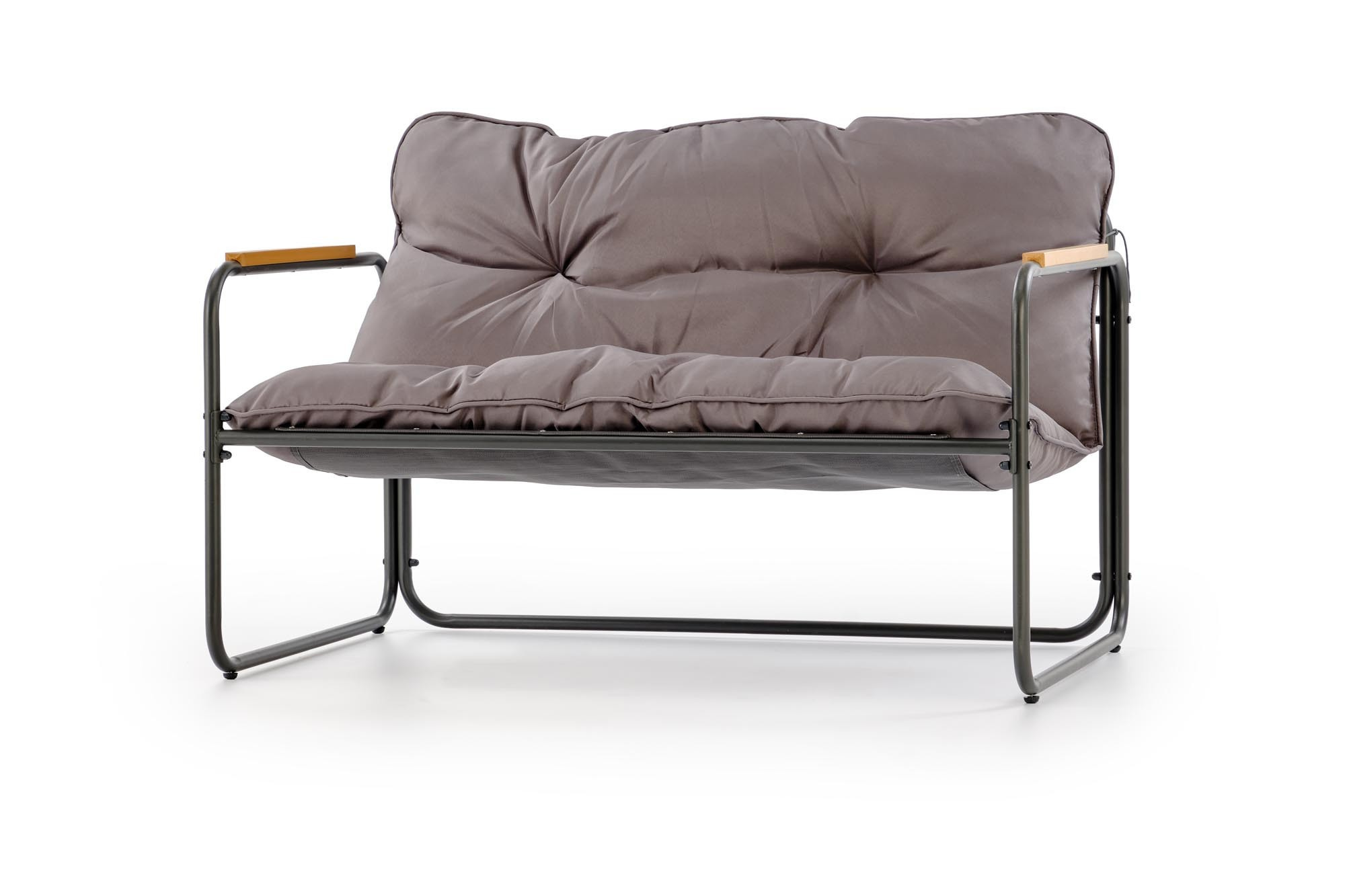 záhradná súprava (pohovka, 2x kreslo, stolík) materiál: práškovo lakovaná oceľ / sieťovina / tkanina / sklo / polystyrén, farba: popolavá - hnedá