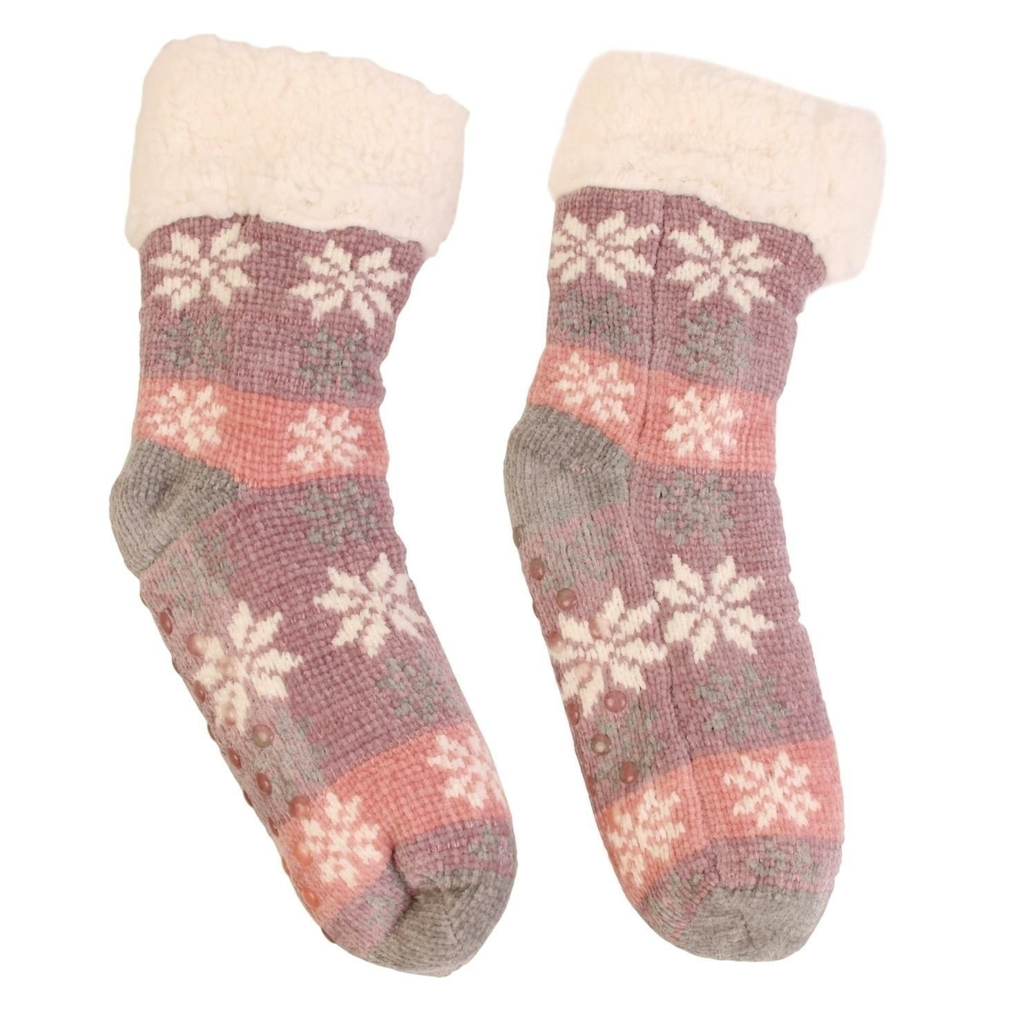 Zateplené ponožky s vianočným vzorom ružové