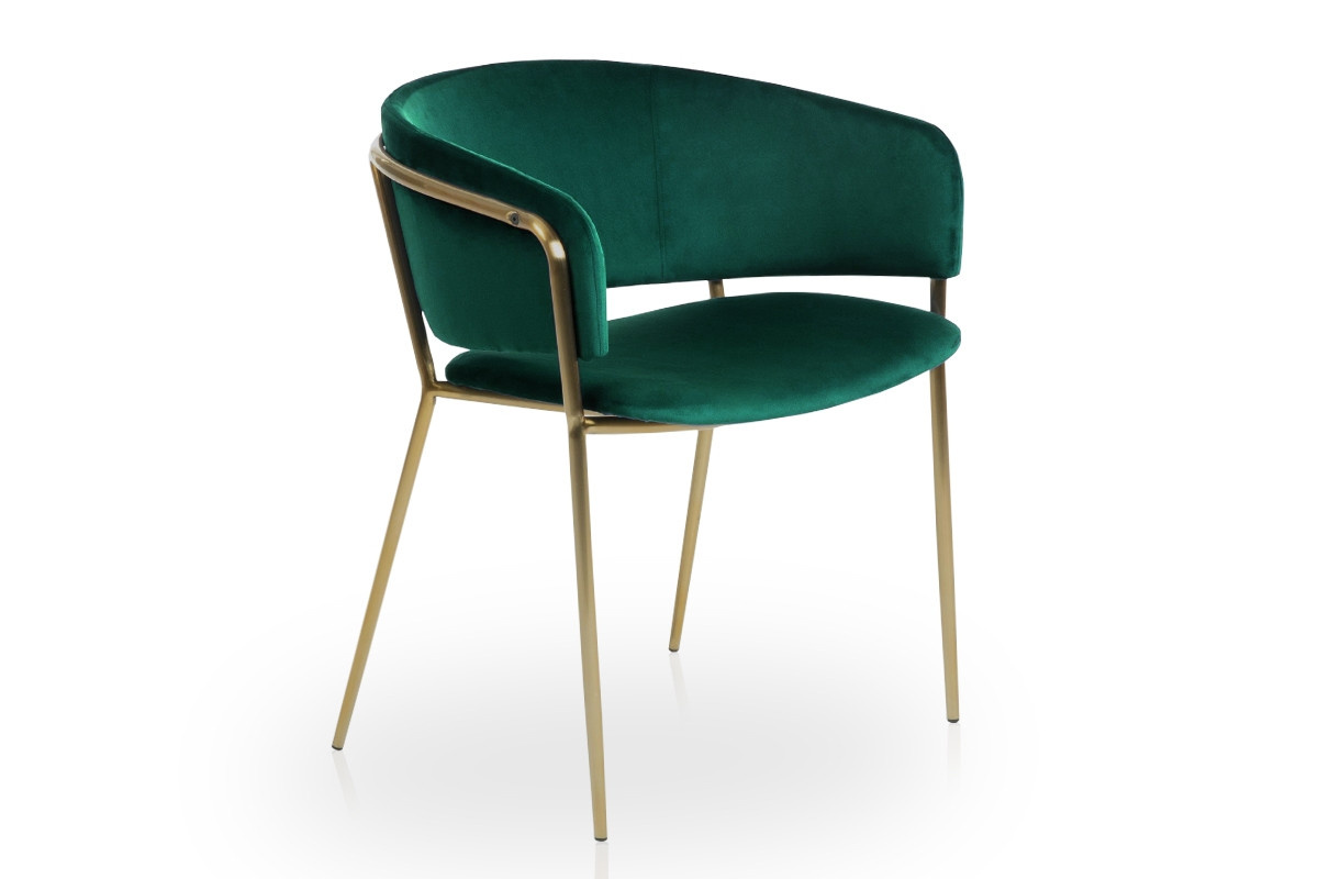 Čalúnené stoličky s podrúčkami Nicole na zlatej mriežke - zelená, šírka: 58, výška: 73, hĺbka: 54, výška sedadla: 47, montáž: vlastná. Loftový model jedálne Nicole na zlatom grile.