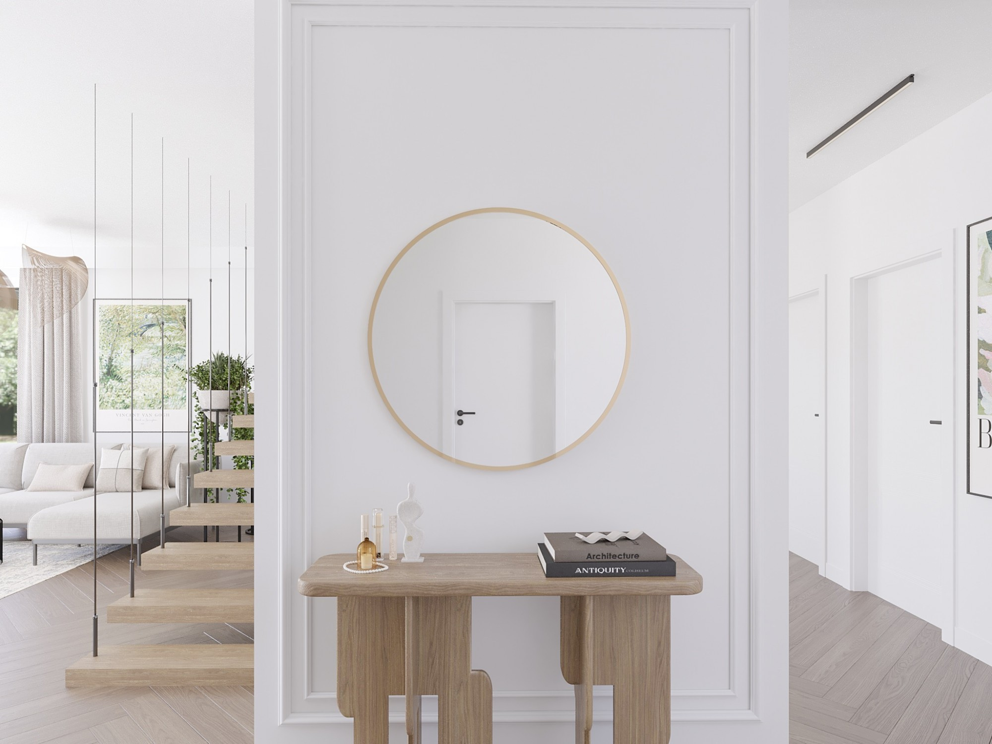 Zrkadlo Gerbinie je elegantné a štýlové zrkadlo o rozmeroch 60x60 centimetrov, ktoré môže dokonale doplniť výzdobu vášho interiéru. Jeho kompaktné rozmery ho robia ideálnym pre rôzne priestory, pričom pridáva nielen funkčnosť, ale aj sofistikovanosť. Hĺbka panelu zrkadla je 2 centimetre, čo z neho robí ľahký a ľahko zavesiteľný na stenu. Všetky potrebné doplnky, ako sú zátky, skrutky a háčiky na zavesenie zrkadla, sú súčasťou balenia, čo robí inštaláciu jednoduchou a pohodlnou. Rám zrkadla Gerbinie je okrúhly a dokončený v krásnej zlatej farbe, čo zrkadlu dodáva luxusný vzhľad a robí ho ústredným bodom vašej miestnosti. Napriek svojmu elegantnému vzhľadu je zrkadlo tiež praktické. Váži 7.5 kilogramov, čo zaisťuje stabilitu a odolnosť. Rozmery balíka, v ktorom bude doručený, sú 67.8x71x8 centimetrov, zabezpečujúci bezpečnú prepravu a ochranu zrkadla počas doručenia. Zrkadlo Gerbinie je vynikajúcou voľbou pre tých, ktorí hľadajú ako funkčnosť, tak krásny dekoratívny prvok pre svoj interiér. Toto zrkadlo nebude iba odrážať váš obraz, ale aj váš jedinečný estetický vkus.