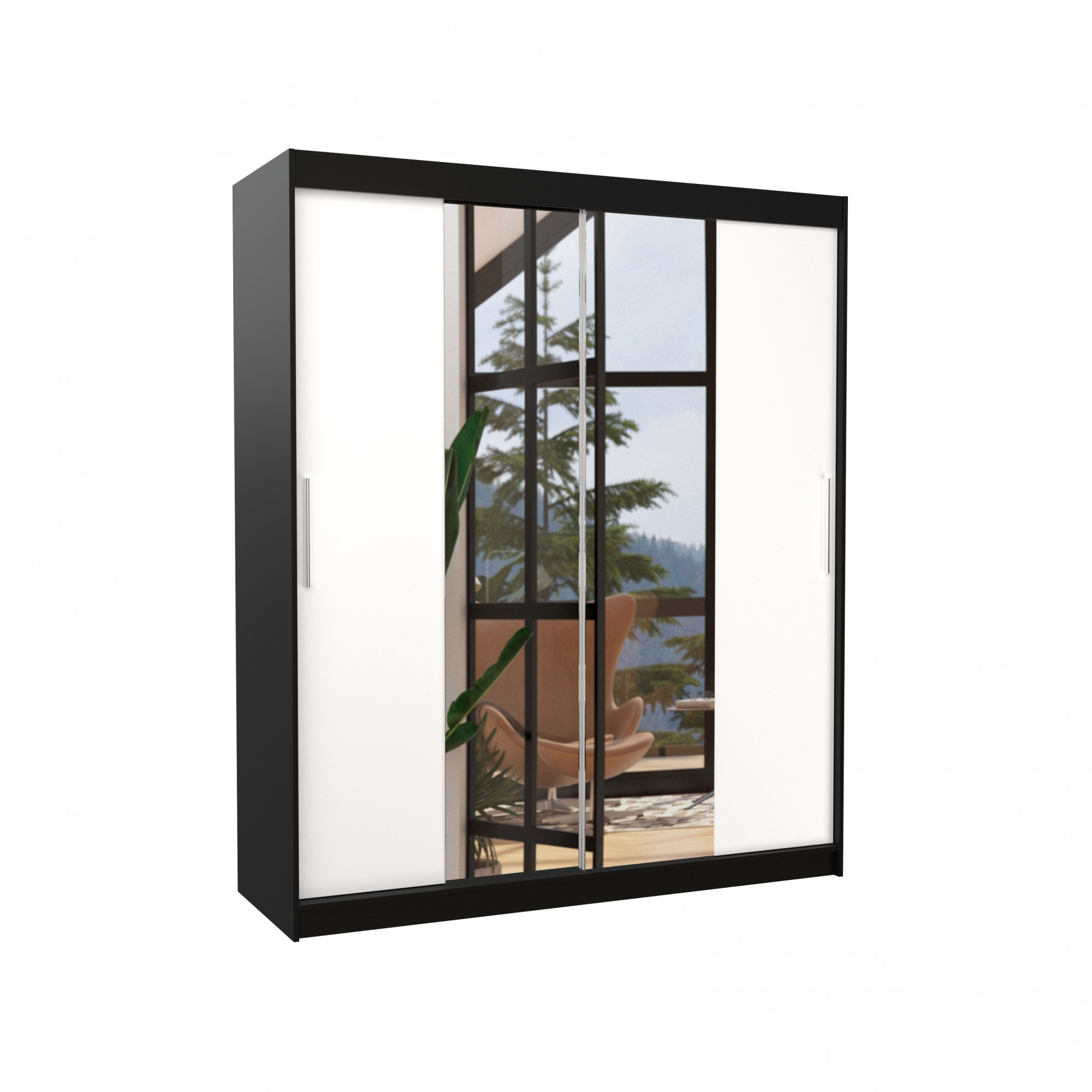 Posuvná skriňa so zrkadlom DALLAS 180 Čierna+Biela