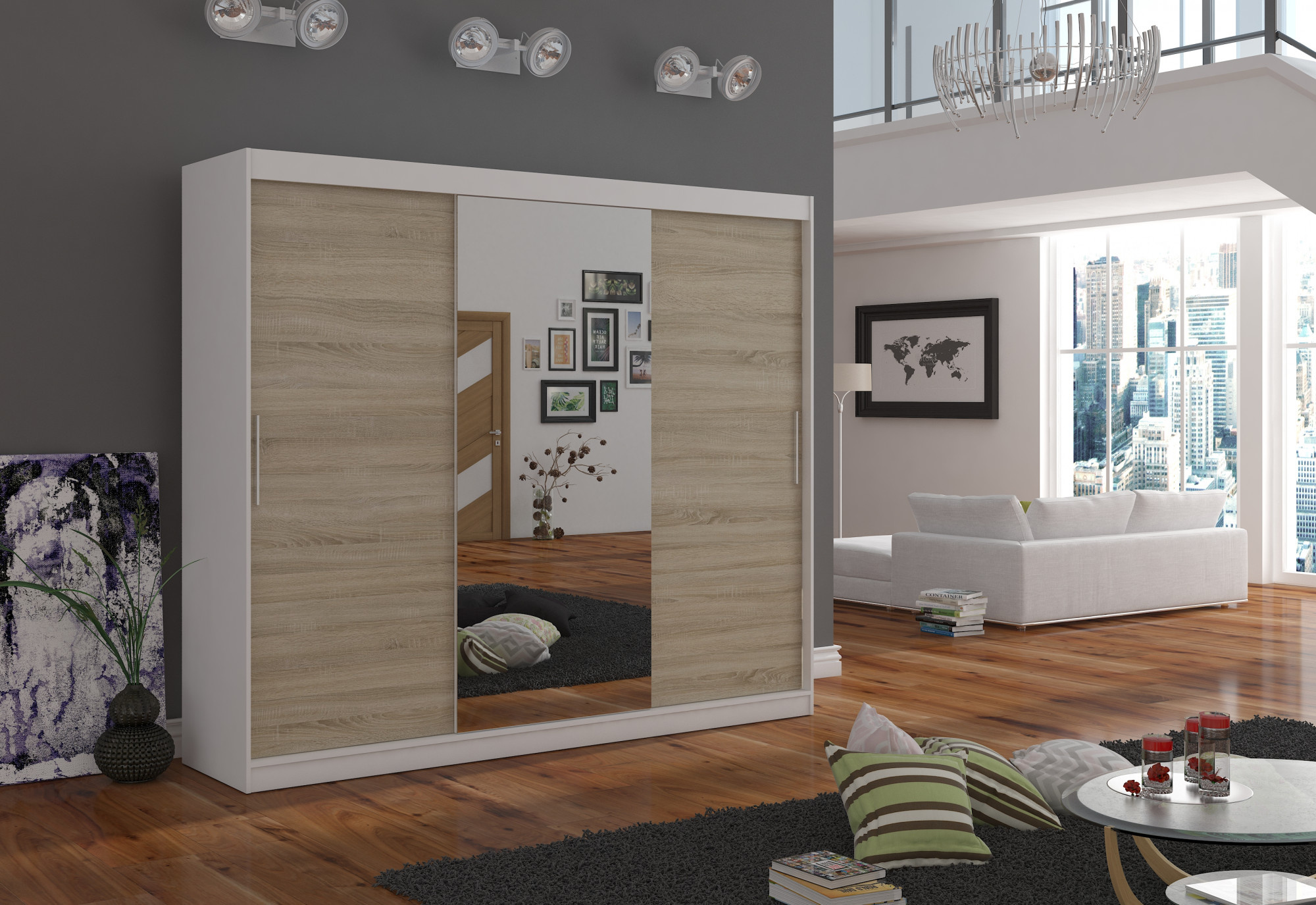 Šatní skriňa s posuvnými dverami a zrkadlom DENIS 250 Biela+Sonoma