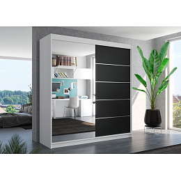 Šatní skriňa s posuvnými dverami a zrkadlom OLIVER 200 Biela+Čierna